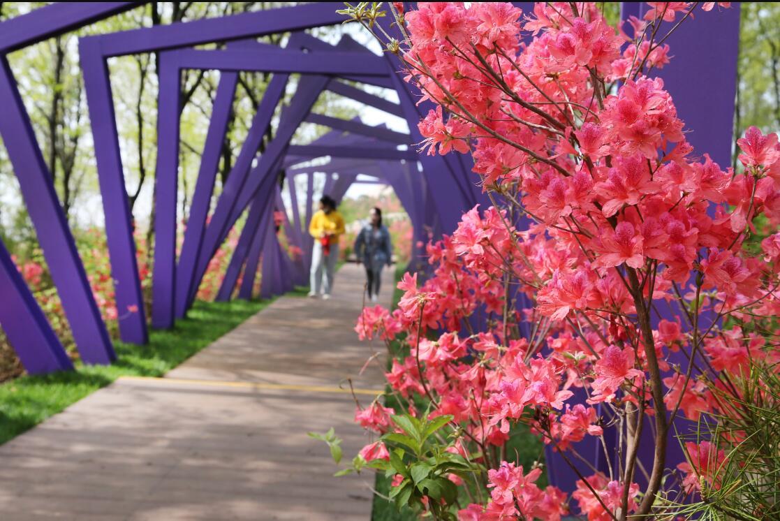 景区利用该片区怪石嶙峋的特点,将奇石进行梳理,并通过成片种植映山红、红王子锦带花,形成壮观的石海、花海景观。目前,已经栽植映山红、红王子锦带花10万余株,花海周围和沿游步道两侧栽植豆梨、榔榆等乔木,通过成片种植映山红、锦带花,形成壮观的“石海、花海”景观。