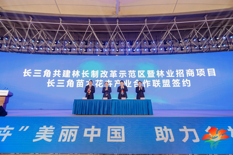 10月15日,2021中国·合肥苗木花卉交易大会开幕期间,沪苏浙皖一市三省林业局主要负责同志签署沪苏浙皖林业部门合力共建长三角一体化林长制改革示范区合作框架协议,沈建辉局长代表江苏省林业局签约。