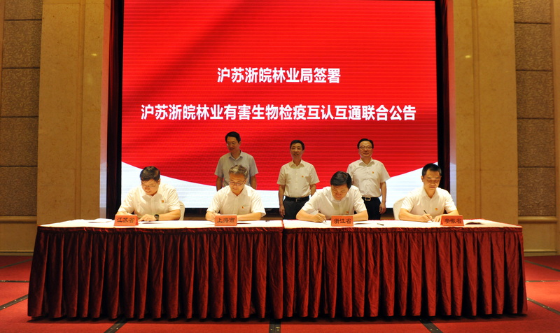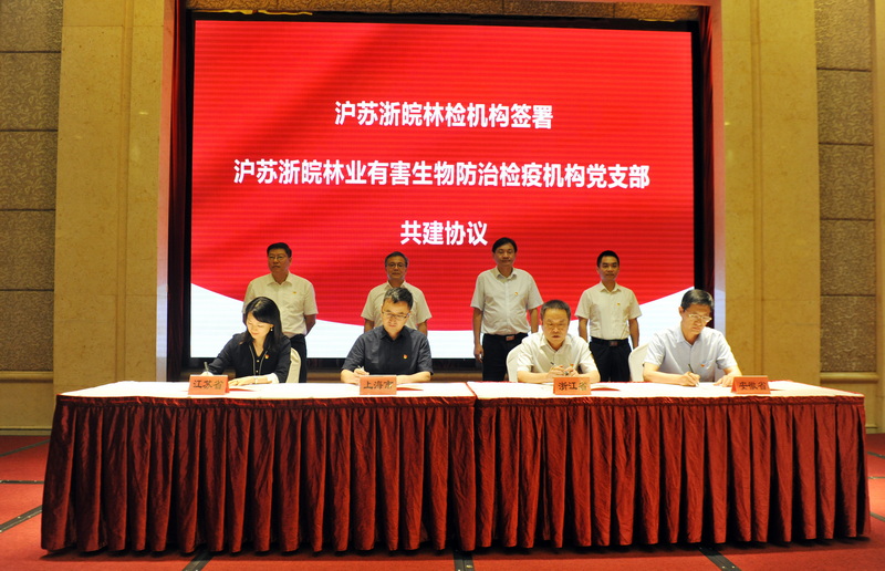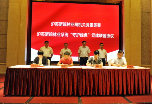 会上还签署了“沪苏浙皖林业系统守护绿色党建联盟协议”、“沪苏浙皖省级林业有害生物防治检疫机构支部共建协议”。沪苏浙皖一市三省林业局机关党委专职副书记、检疫防治机构主要负责同志参加活动。