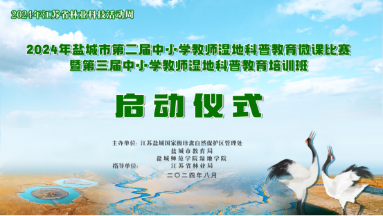 8月15日在第二个全国生态日到临之际,2024年盐城市第二届中小学教师湿地科普教育微课比赛暨盐城市第三届中小学教师湿地科普教育培训正式启动。本次活动由江苏盐城国家级珍禽自然保护区管理处、盐城市教育局与盐城师范学院湿地学院联合主办,旨在进一步推动全市中小学的湿地科普教育,提升教师们的湿地科普教育能力和生态保护意识。