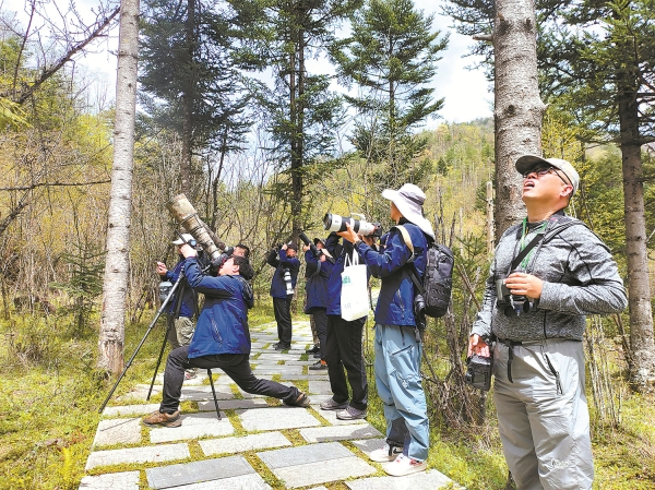 得益于观鸟活动,神农架观鸟、观星、观云、观兽等特色科普旅游项目加速兴起,“观鸟经济”持续火热,以“神农架观鸟”为品牌的“寻找鸟类踪迹、完善配套设施、组织观鸟活动、接待观鸟者”等观鸟元素,为生态旅游增添了新业态和吸引力,观鸟爱好者、鸟类研究者纷至沓来,带动乡村民宿、特色餐饮、科普研学等产业蓬勃发展,“观鸟经济”迈上了发展的“快车道”。