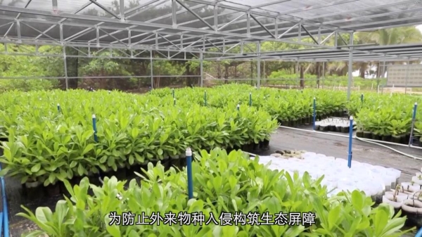 走进三沙市七连屿赵述岛,岛上植被郁郁葱葱,其中很多刚刚栽种的植被都源自岛上的种苗培育基地。基地自2021年建设以来,每年培育数十种、约1.5万株的西沙岛礁本土植物。