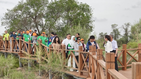 7月30日至8月3日,由中华人民共和国商务部主办、国家林业和草原局管理干部学院承办,由埃及、伊拉克、科威特、约旦、沙特阿拉伯五国从事农业、自然资源管理、环境保护研究的36名官员与技术人员组成的阿拉伯国家防沙治沙技术研修班来到我省武威市,围绕防沙治沙开展学习交流活动。
