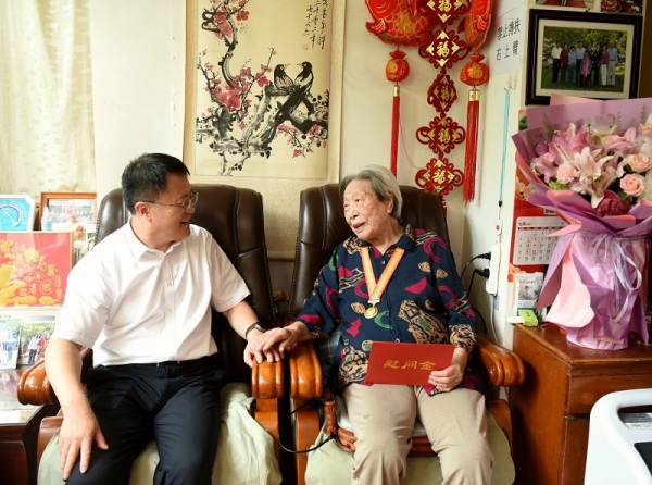 王永华同志1941年8月参加革命工作,抗日战争期间曾担任山东掖县妇救会干事,今年5月28日度过了百岁生日。赵晓晖来到老人家中,为她佩戴纪念章,关切询问老人的身体健康、就医保障、日常生活等情况,送上美好祝福,与老人亲切交流,并认真倾听她投身革命、建功立业的感人事迹。赵晓晖说,抗战老同志是党和国家的宝贵财富,是我们学习的榜样,要用心用情用力做好服务保障工作,让老同志感受到党和政府的温暖。年轻同志要继承和弘扬伟大抗战精神,赓续红色血脉,传承红色基因,以更加务实的作风、更加有力的举措扎实做好各项工作,为自然资源事业作出新的更大贡献。