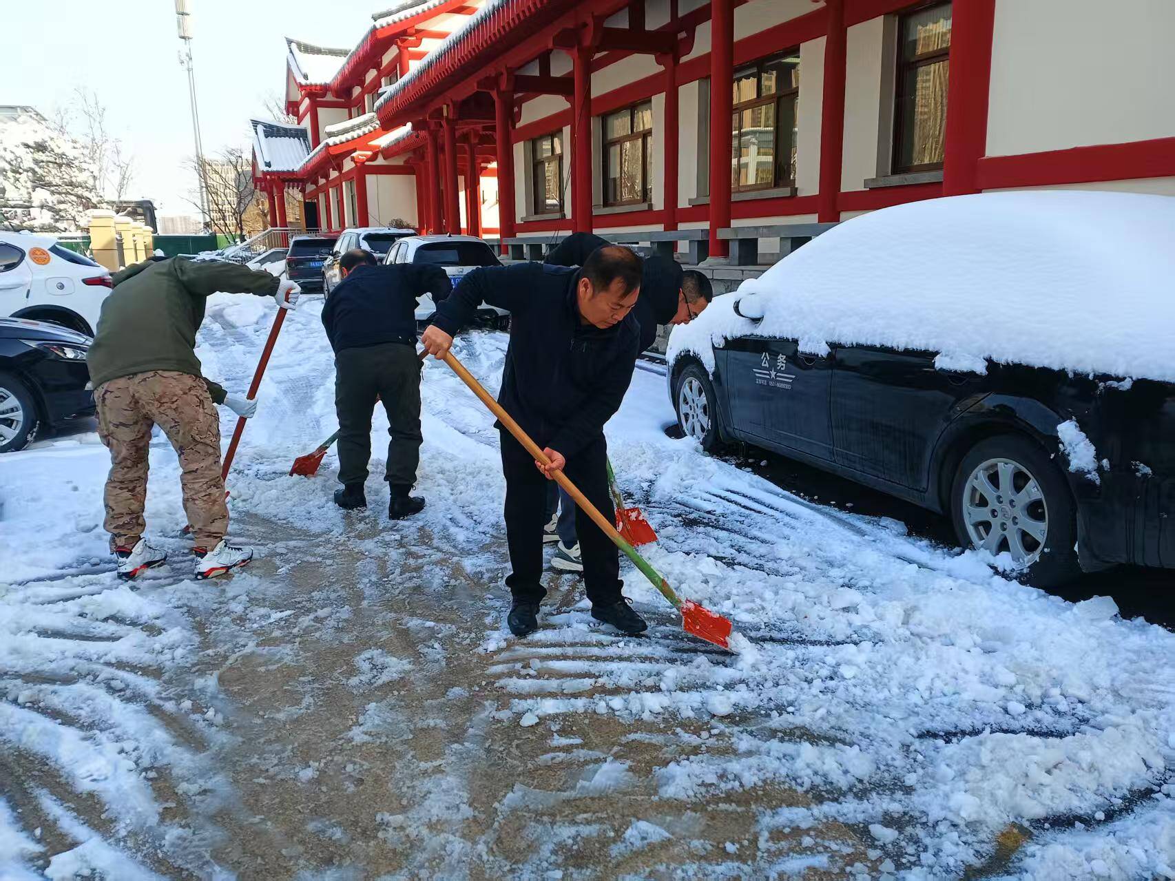 3月3日上午,分管负责同志带领全体机关干部清理大院积雪。