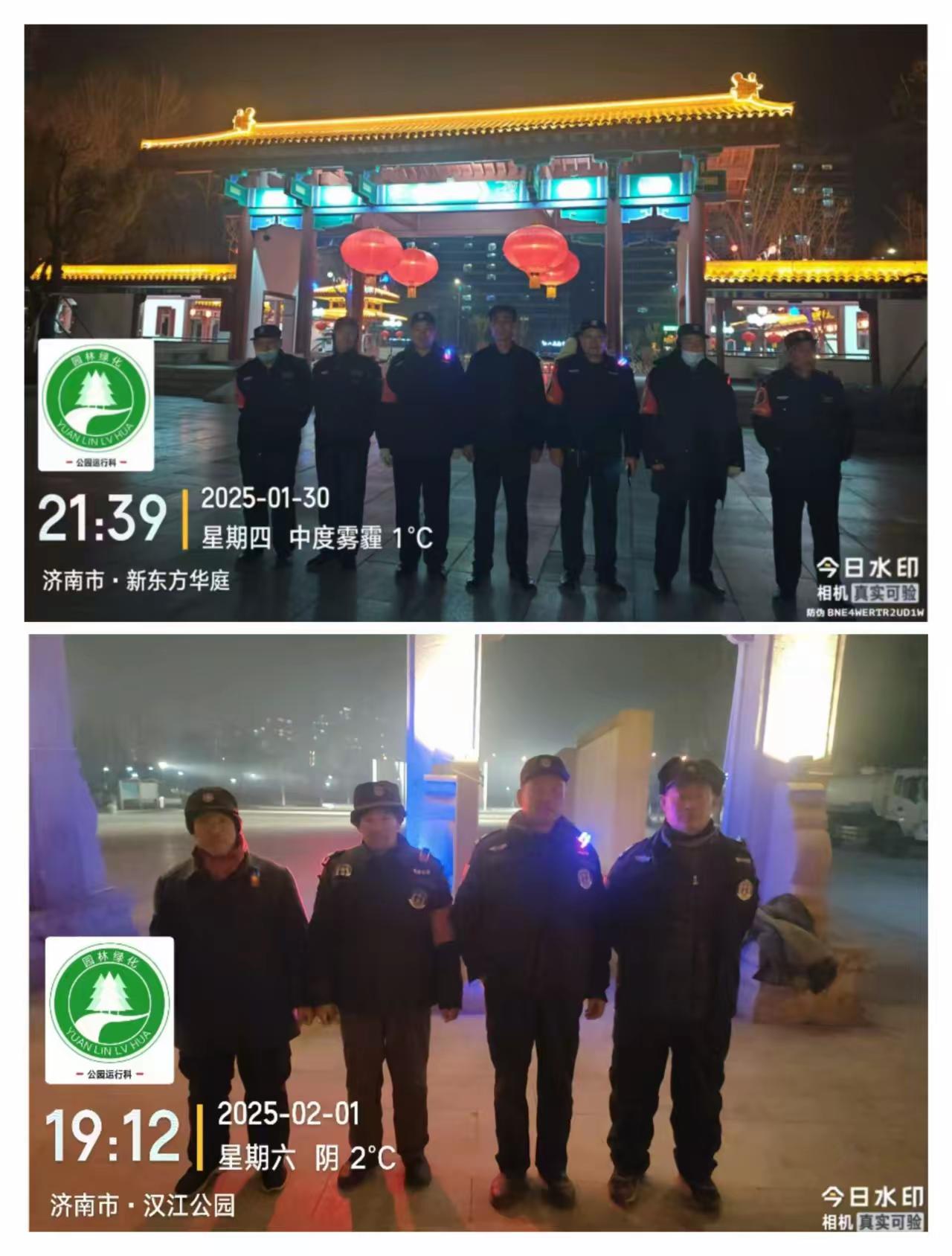 值班巡查优“秩序”。春节期间人流密集、管理挑战加剧,中心着重加强对公园出入口、热门游览区、休息广场、水体周边、道路游园、祭祀等关键区域的秩序管理。增派流动巡查人员,安排安保人员分组轮岗,进行24小时不间断巡逻检查,特别加强夜间安全巡查,积极劝导噪音扰民、乱丢乱扔等不文明行为,为广大游客创造文明、有序的游玩环境。
