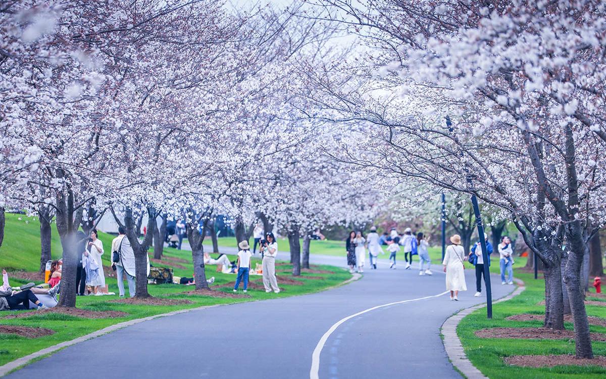 春来,樱亦来。这个春天,多变的生活比往年更加难忘,也令人倍加珍惜与大自然的每一次相拥,与家人朋友的每一刻相见。辰山植物园内,春花静静绽放,大家则默默被安抚。自从3月14日今年第一枝染井吉野樱花盛开以来,每日观测樱花状态已成为了辰山园艺师、市民游客以及“云赏樱”网友们的“追樱”必修课。目前辰山植物园樱花大道两侧的染井吉野樱花开近四成,满树楚楚动人、粉“云”初现。
