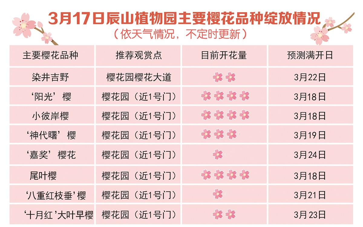 辰山植物园2022赏樱前线报 染井吉野花开四成渐入佳境